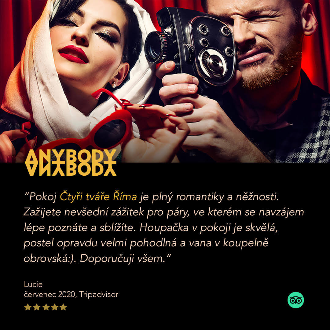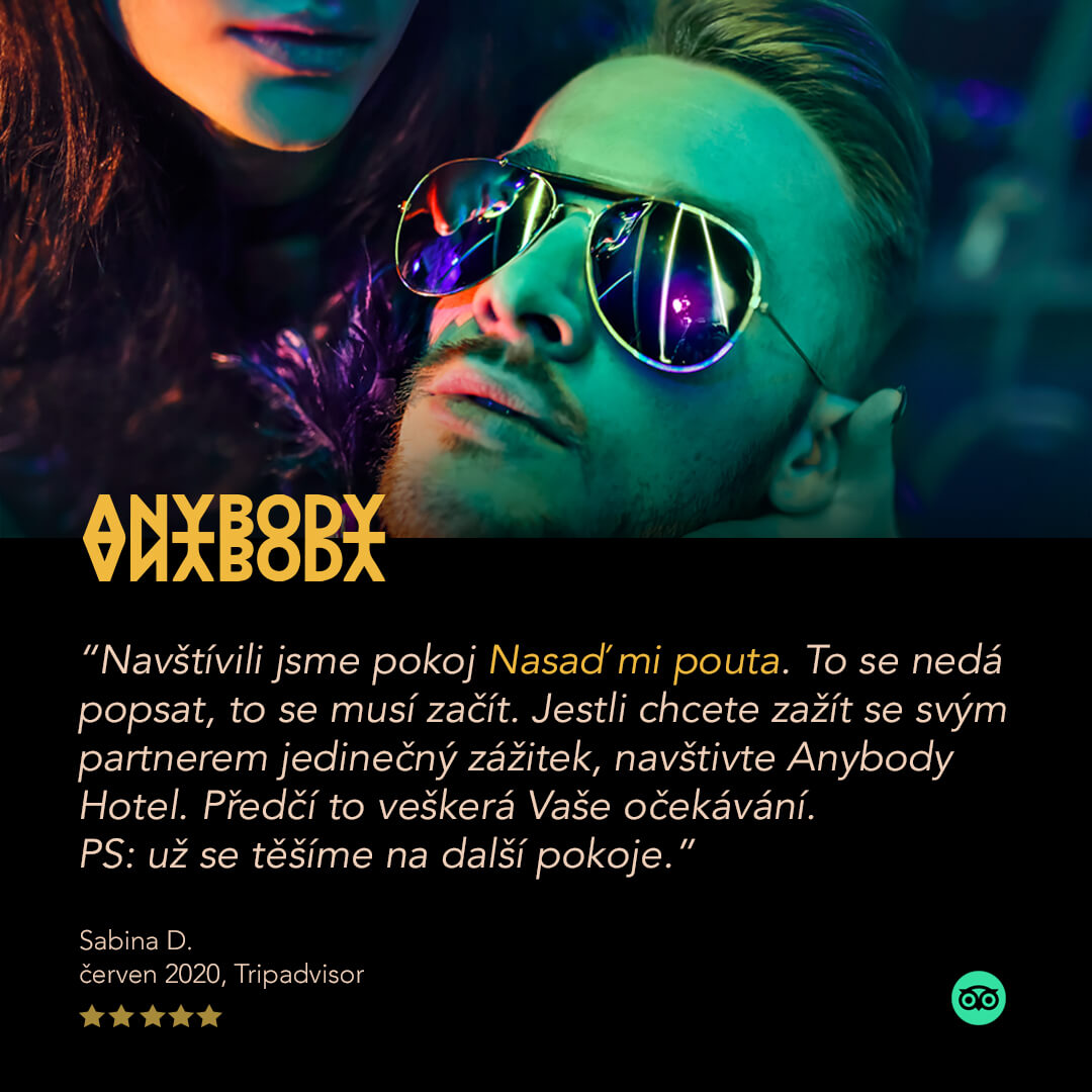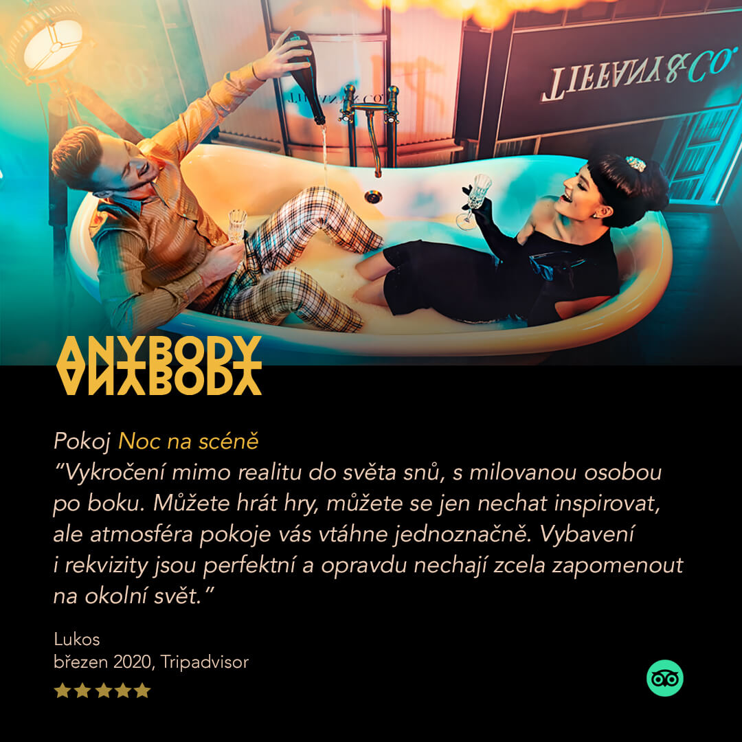 Noc v Anybody je neopakovatelný zážitek a také skvělý dárek pro Vaše blízké. V jednom z 10 originálních pokojů spolu hosté zažívají nezapomenutelný párový příběh se vším komfortem, co může absolutní vítěz prestižního hodnocení Amazing Places nabídnout.
