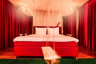 A room with ancient statues and a swing will treat you to a four-and-a-half square metre continental bed, a minibar with drinks prepared by our very own “Lidi z Baru” cocktail bar crew, tablet-controlled light and sound scenes and air conditioning. With a pre-recorded script and thematic props, you can live out a story inspired by La dolce vita, or create one to your liking. Become someone else for one night. Simply put – be Anybody.